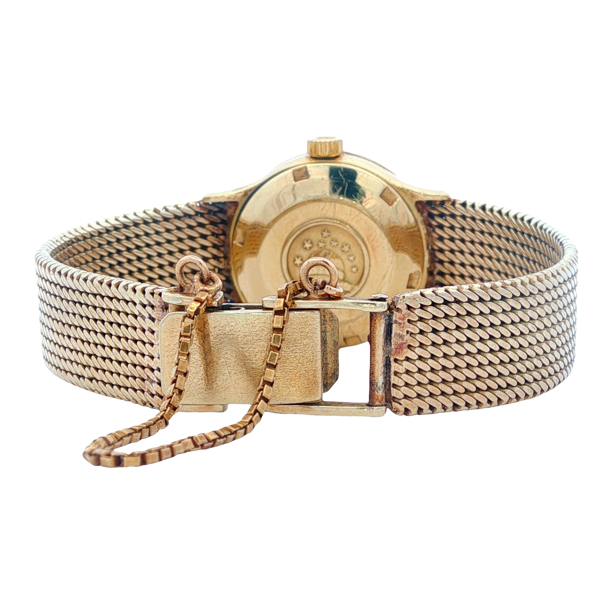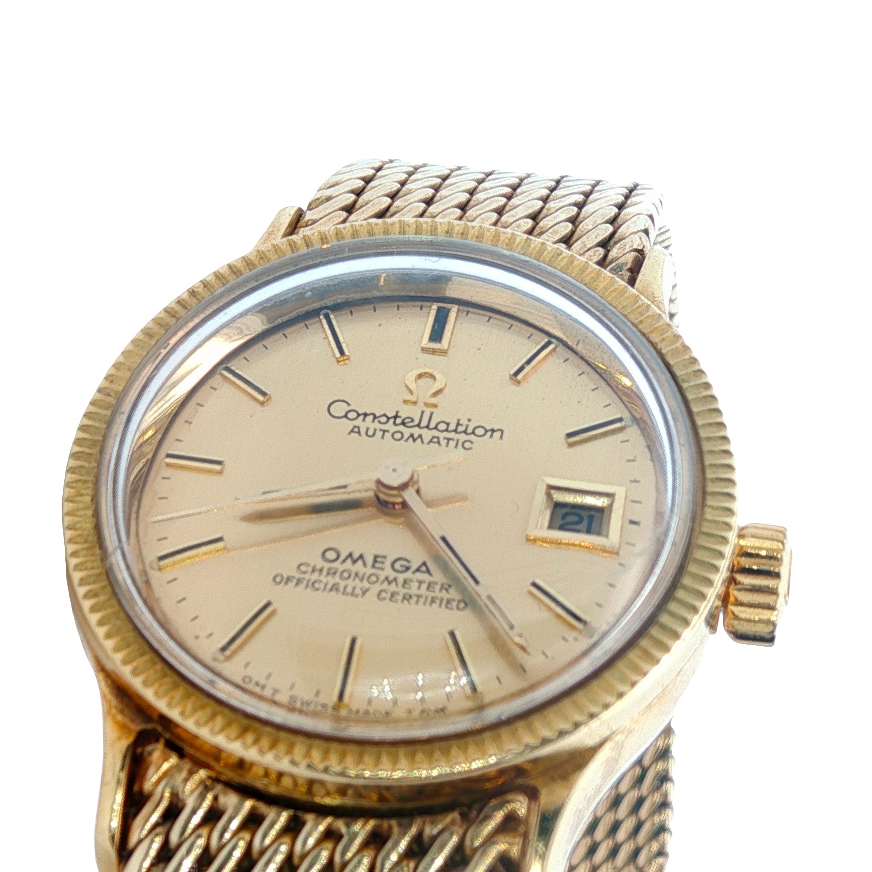 Vintage 18K Yellow Gold 24.43mm Automatic Omega Constellation Watch Officially Certified Chronometer with an integrated 14k Gold bracelet fits a 7" wrist