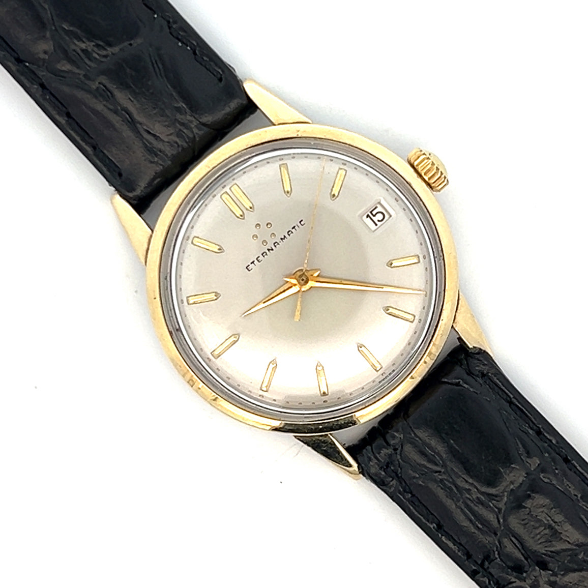 Originating the ball-bearing Automatic, Eterna's engineering persists in even today's self-winding watches. Our watchmaker loves them. The gold-cap is a fabulously durable and beautiful case material. The dial is beautiful and this particular piece has had an easy life. Highly recommended for reliability, durability and tasteful elegance.
