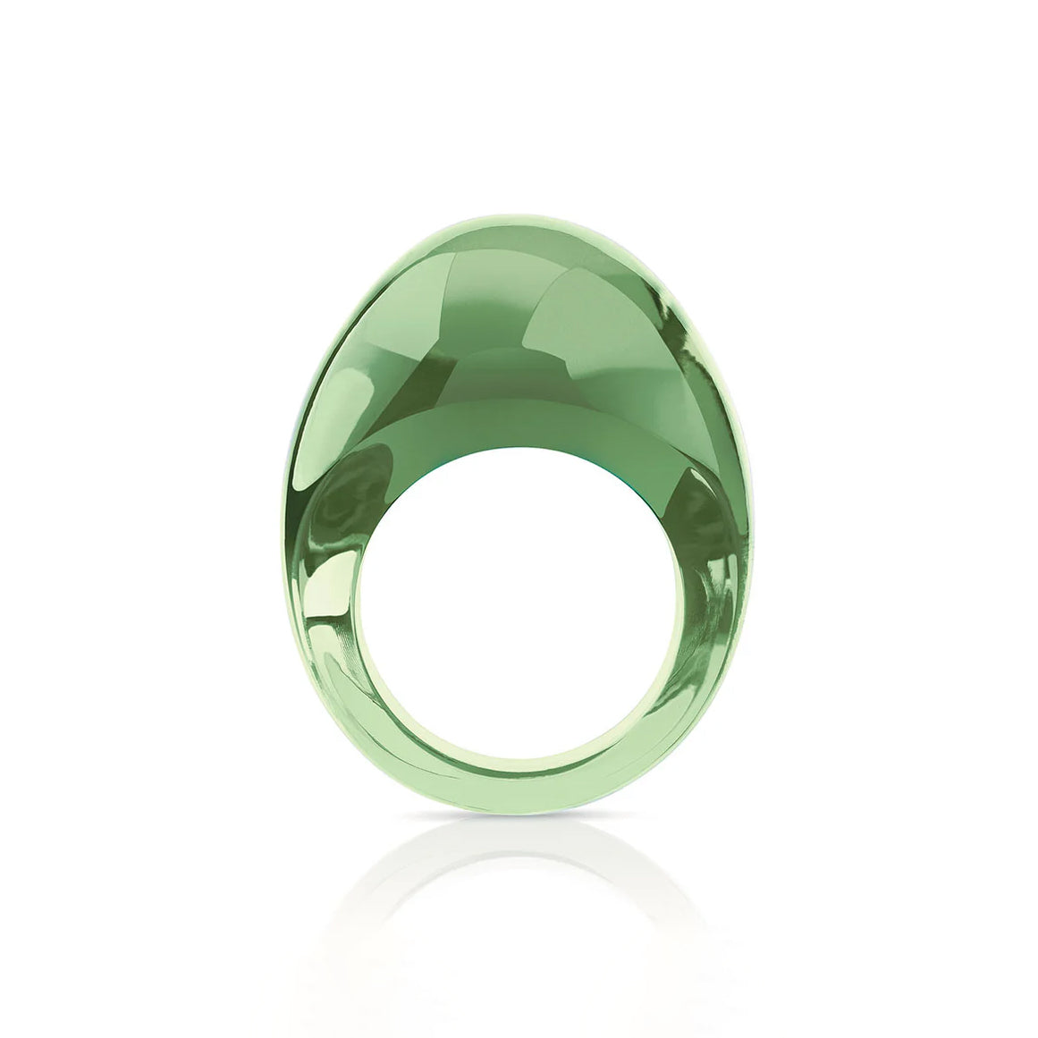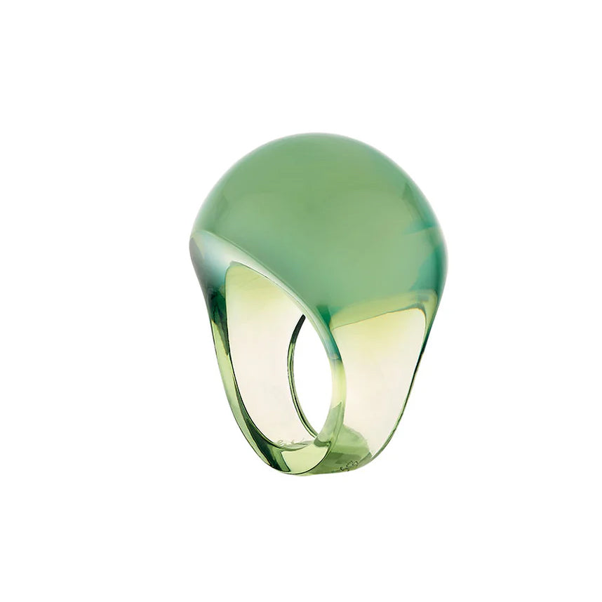 Vintage Lalique Antinea Green Cabochon Crystal Ring in the original box