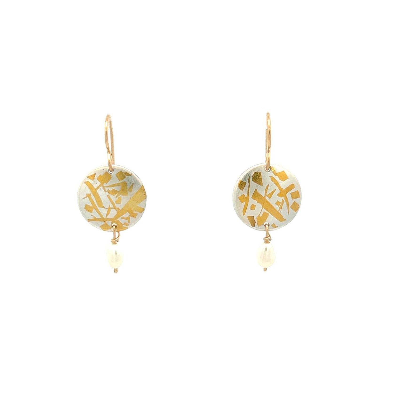 24K Gold over Sterling Silver Keum-Boo Round Earrings with Pearl Dangles.