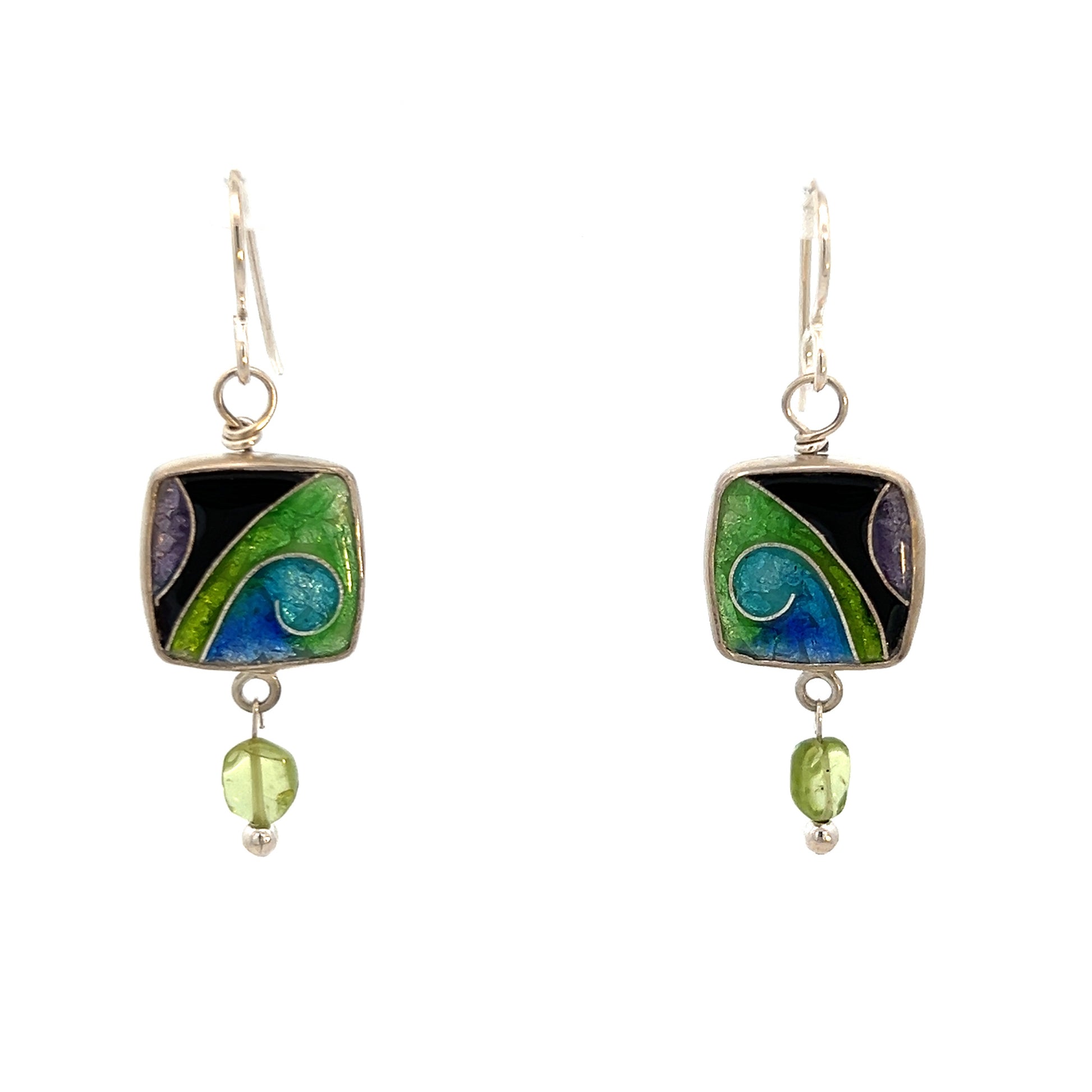 Sterling Silver Cloisonne Earrings with Peridot & Pearls