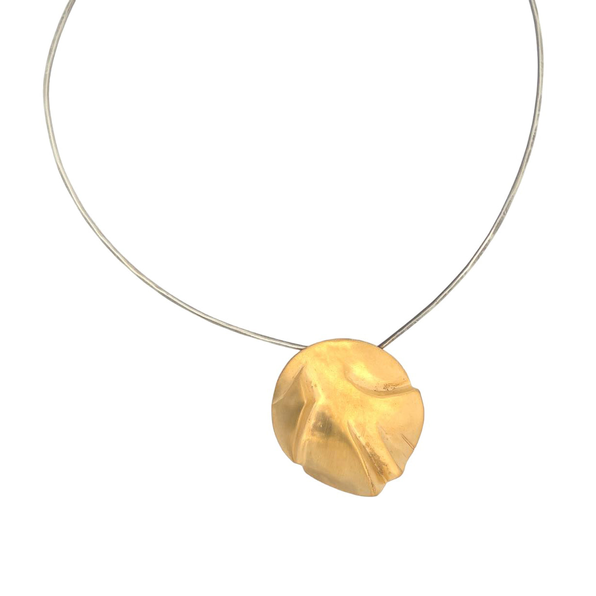 18K Gold Plated Sterling Silver "Mystery Disc" pendant on a neck ring